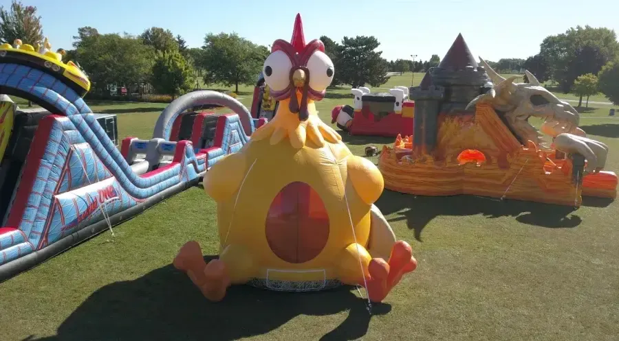 Hey-Hey! Make a statement with this Giant 24 Foot Chicken Bouncer! Perfect for parties, festivals, and family events with a spacious bouncing area.